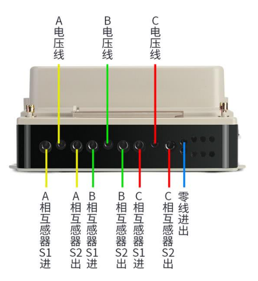 注意147和258之間沒有連接片,147分別接三個互感器的S1端,369接互感器的S2端,ABC三條火線從互感器的P1面穿過,三個互感器的S2連一起接地。