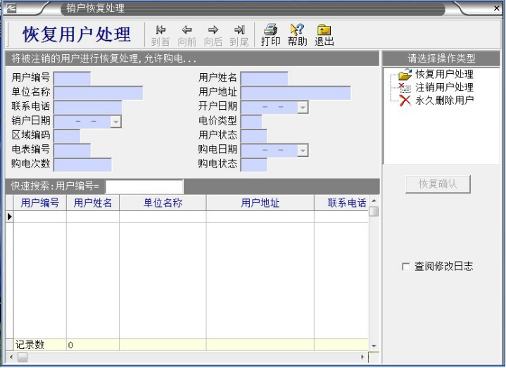 鼠標(biāo)左鍵:,鼠標(biāo)左鍵“銷戶恢復(fù)處理”,出現(xiàn)以下對話框: