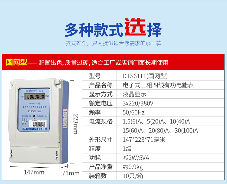 DTS6111型三相四線和DSS6111型三相三線兩種型號三相電子式有功電能表,內部運用了集成電路在經過SMT工藝生產制作而成。結構設計合理,制作工藝先進,跟傳統的電能計量表對比,三相電子式有功電能表的測量準確度高、性能可靠、節能。